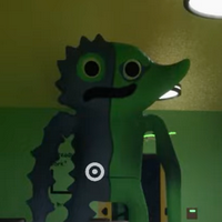 Nabnab appears as a blue spider-like humanoid with three eyes and a large mouth with several sharp teeth. He wears a monochromatic birthday hat that tilts off of the left side of his head. In his monster form, he also has a tongue.